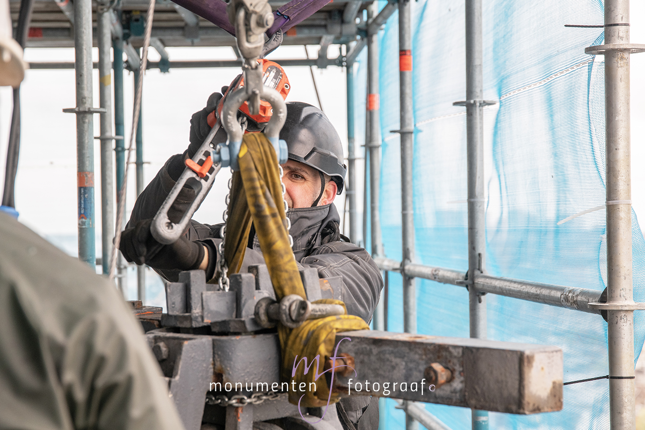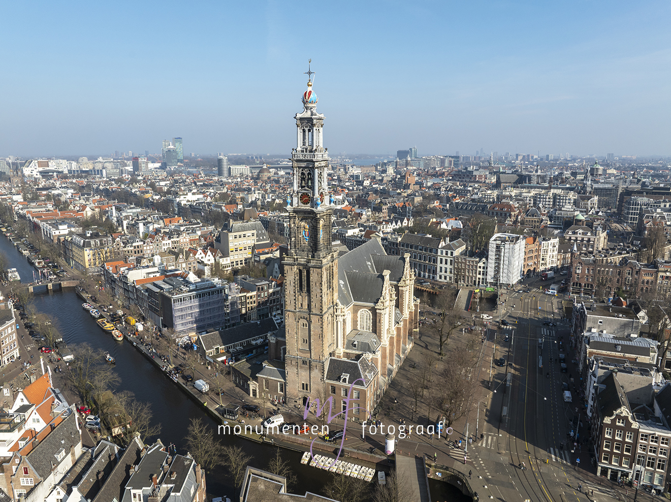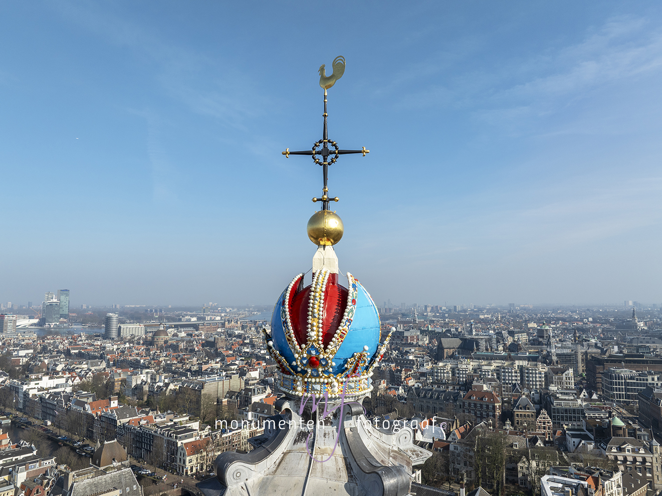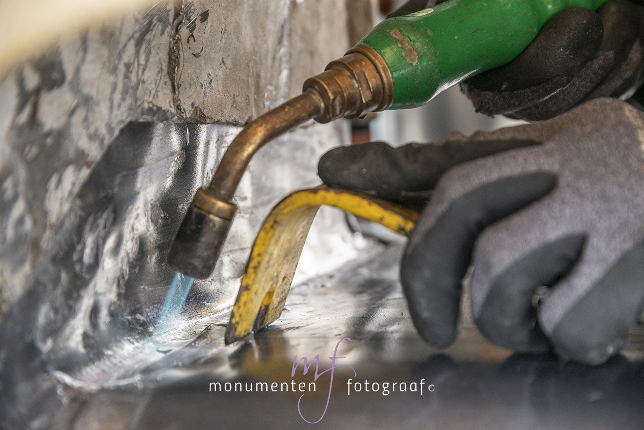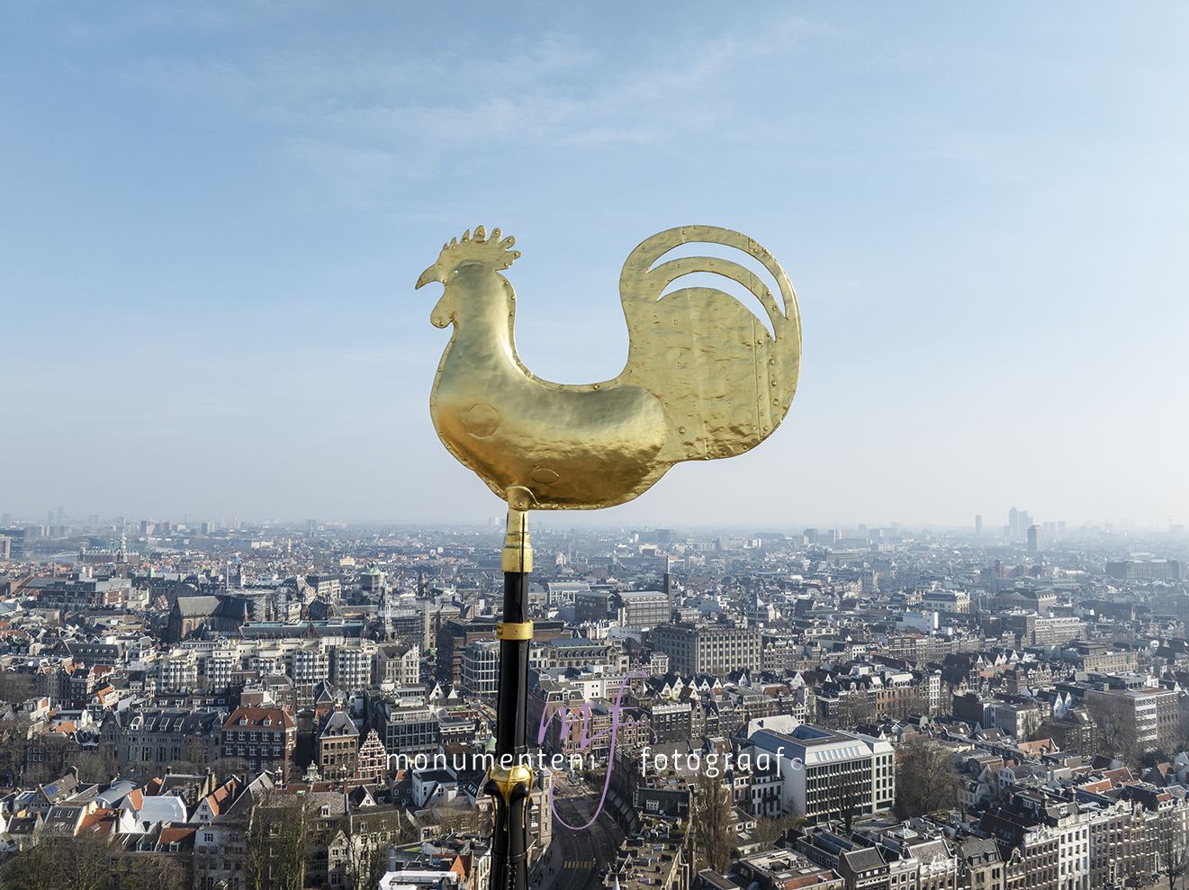 In de periode 2022- 2025 fotografeerde ik verschillende stadia van de Westertoren in Amsterdam. Voor, tussen en na foto’s. Disciplines die ik voor de camera had waren onder andere: schilders, voegers, glasblazers, bronsgieters, timmermannen, maar ook de haan die van de toren gehaald werd èn weer terug geplaatst, net als het carillon, beide fases. Uiteindelijk de toren vanuit de lucht kunnen fotograferen. Dan zie je details die je vanaf de grond, helaas, niet ziet…